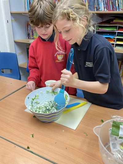 We learnt about the types of crops and foods available to the Ancient Egyptians and why the River Nile was so important to them. We then followed recipes to create some Egyptian foods and taste-tested them. We made flatbreads, hummus, salate baladi (salad of the land) and salalet zabadee (an Egyptian version of tzatziki). Everything was delicious but the flatbreads and zabadee were voted the favourites.