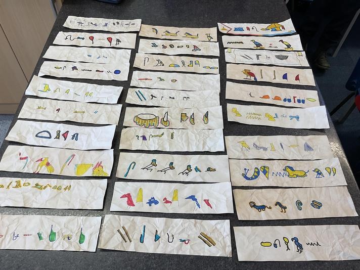We learnt to write our names in hieroglyphs and drew them on papyrus (tea-stained paper).