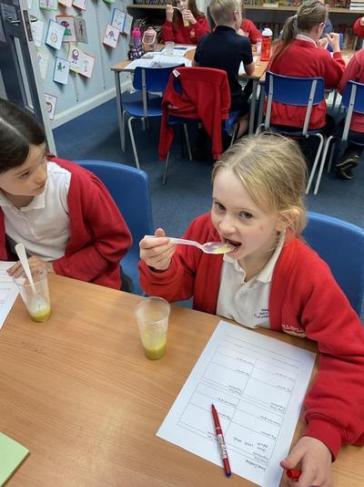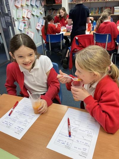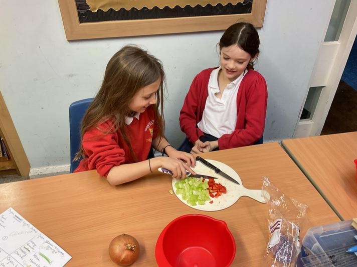 We made four different types of soup (leek and potato, root vegetable, red pepper and tomato, and broccoli and cauliflower). We all used peeling and chopping skills to help make one of the soups, then taste-tested all of the soups before choosing our favourite.