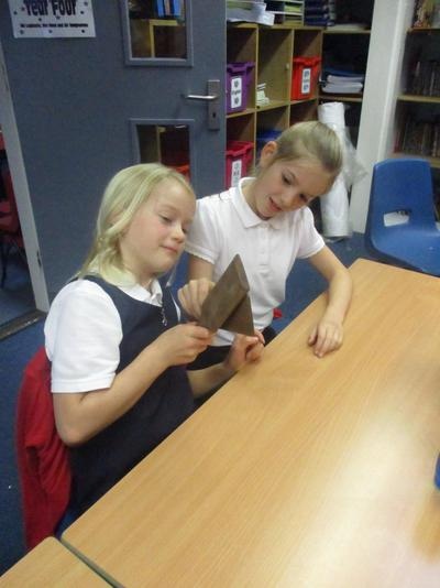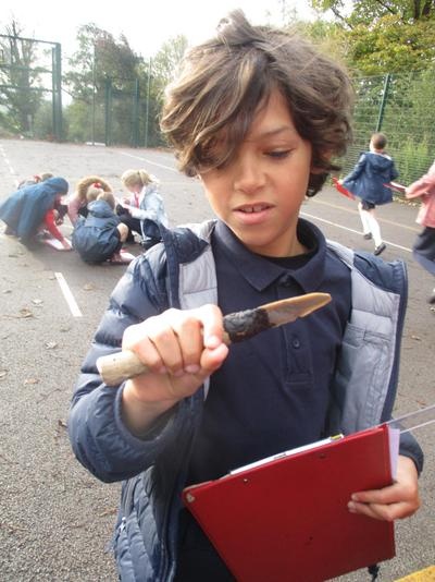 We took on the role of archaeologists to discover Stone Age and Bronze Age artefacts in the school grounds. We handled them carefully, then sketched, measured and described them before predicting what they might have been used for.