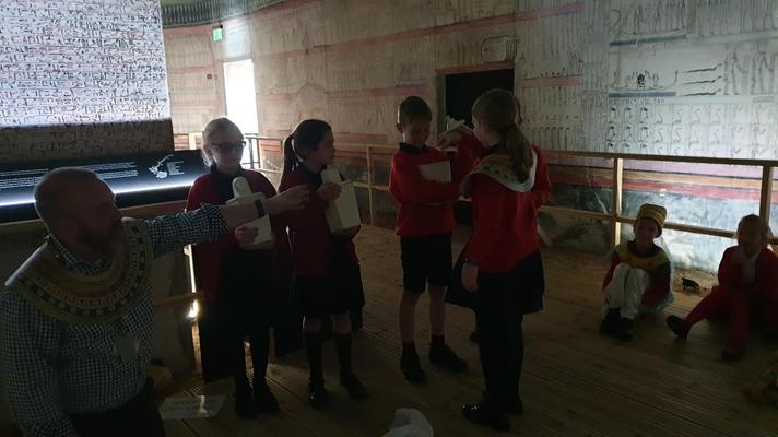 On Tuesday 10th September, we visited Bolton Museum to take part in an Ancient Egyptian workshop. We made a timeline, got dressed up, explored a tomb and looked at a mummy as well as learning lots more facts about life and death in Ancient Egypt.
