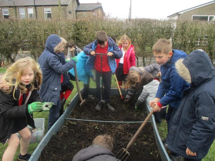 In March, we prepared our raised beds for planting our vegetable seeds. We also planted sunflower seeds in our own pots to see who can grow the tallest sunflower. Keep checking back here to see our progress!